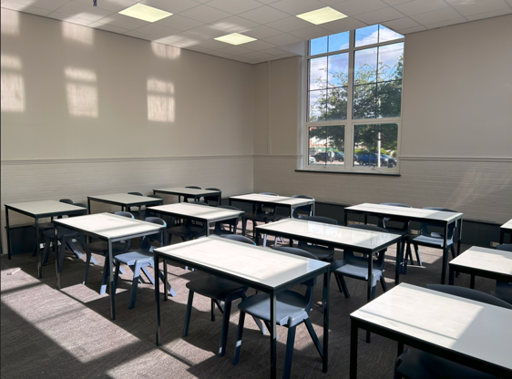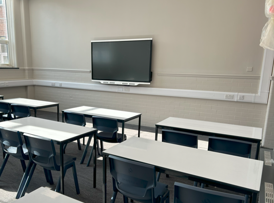 Works that began before the end of the summer term are now complete in the Armour Building, where two classrooms have been fully refurbished. The spaces have been transformed into bright, modern learning environments, featuring new furniture, fresh decoration, new carpeting, and specialist acoustic ceiling tiles to enhance significantly sound quality.